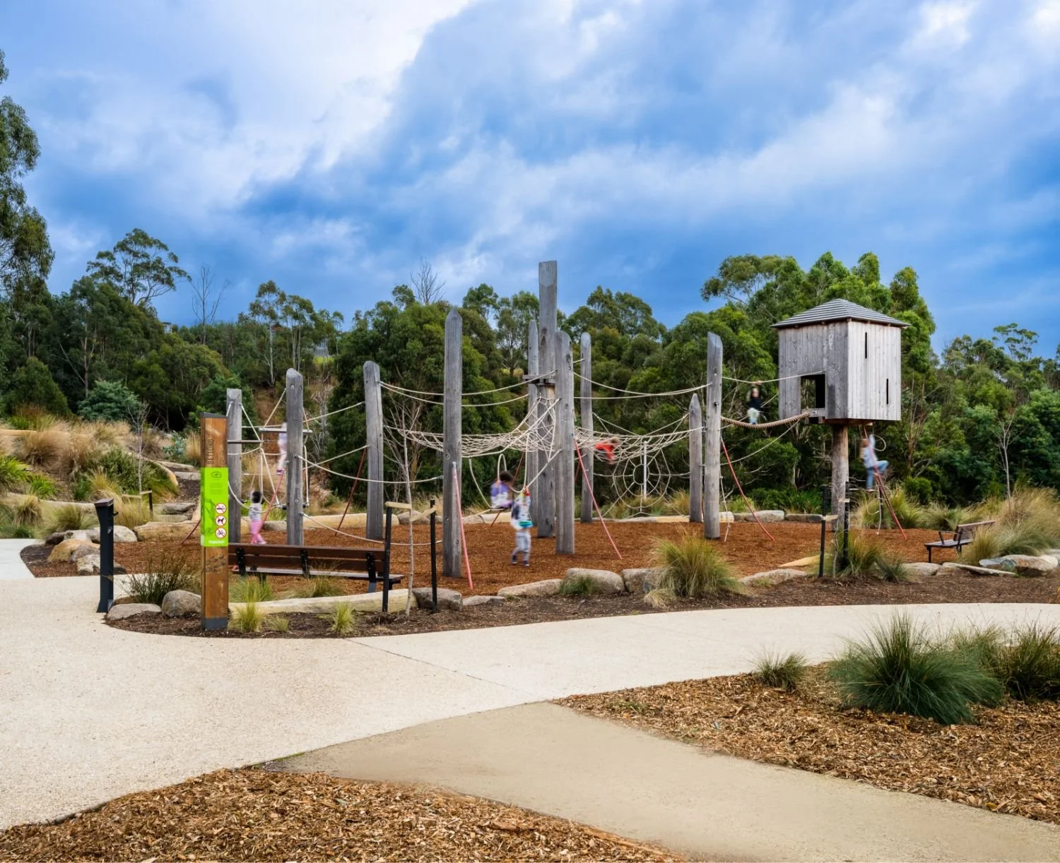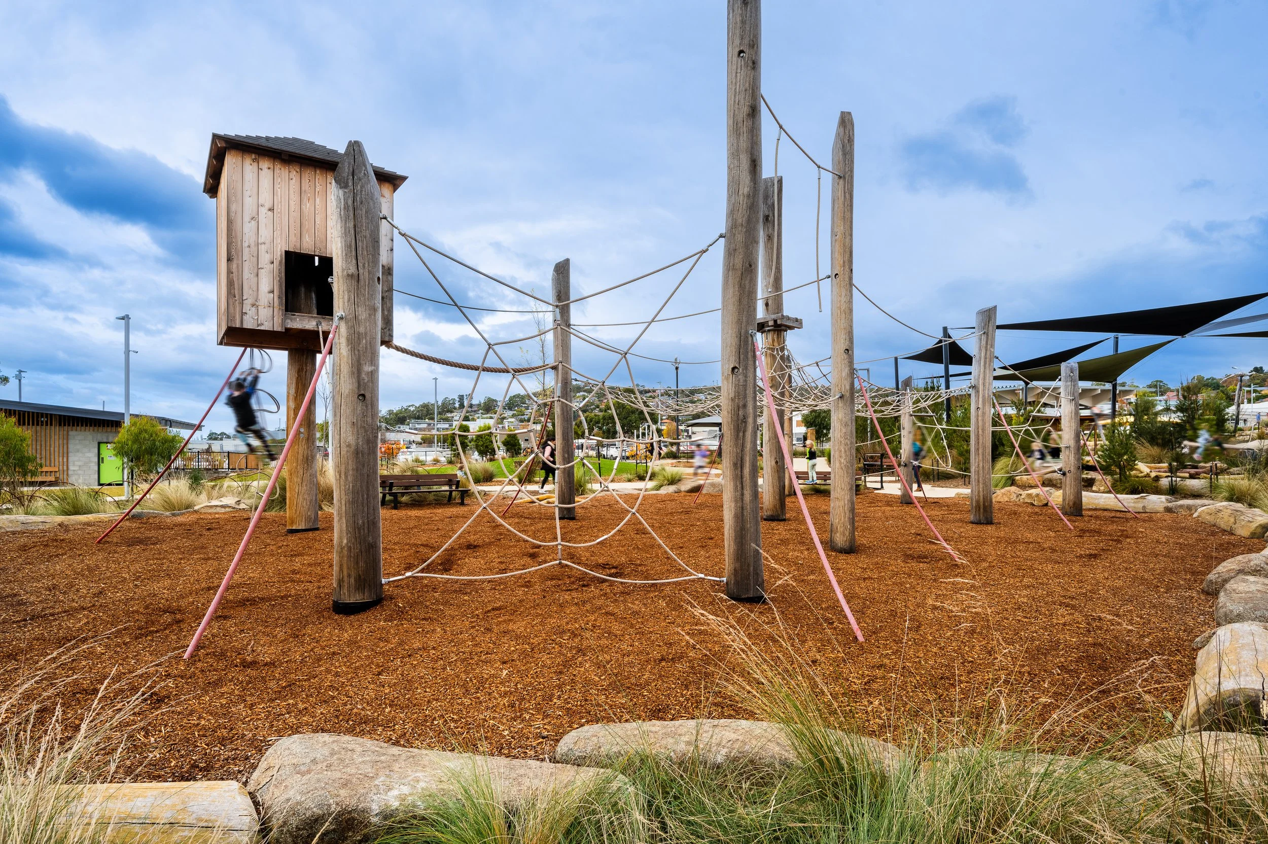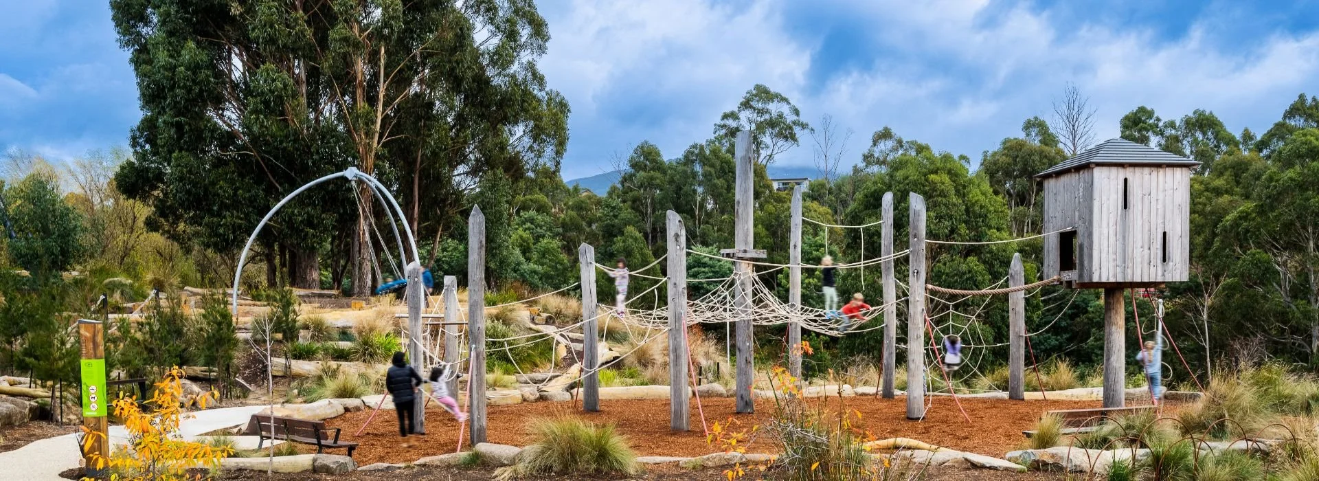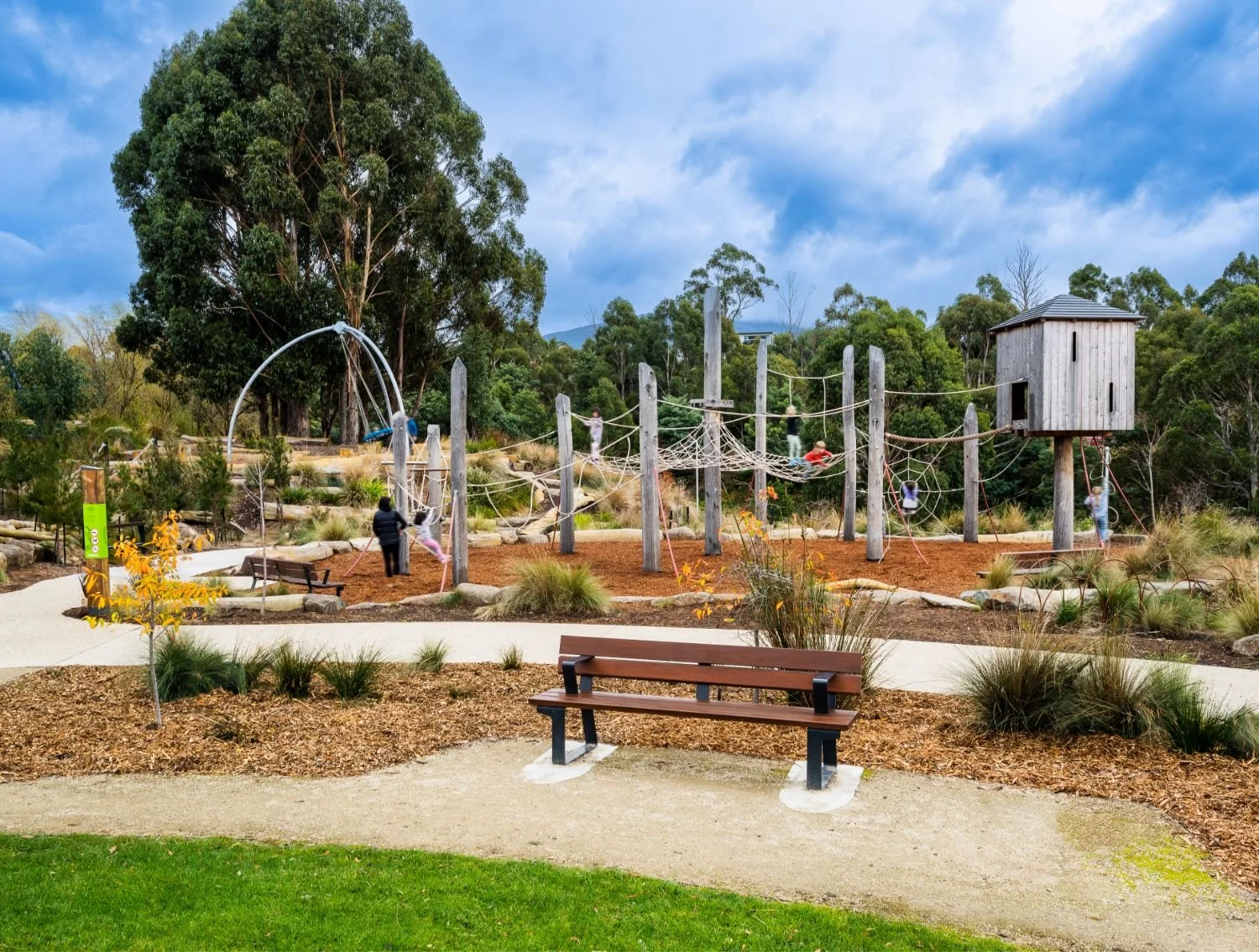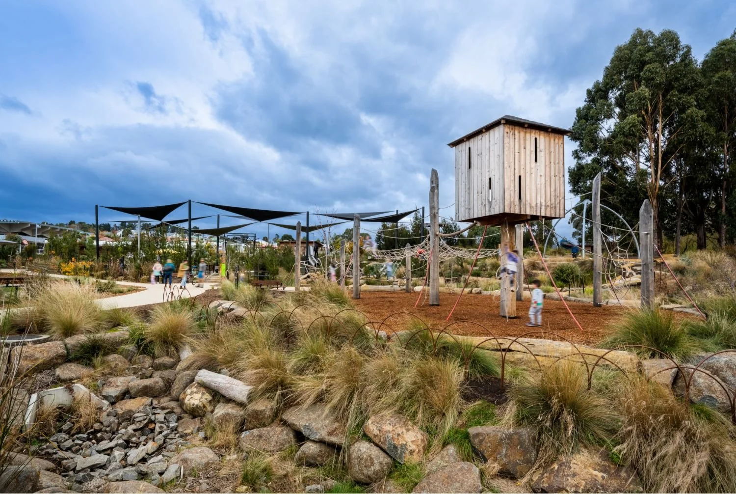 A joint project of the Kingborough Council and Playstreet, this truly inclusive playground is family friendly, with numerous age-appropriate, nature-based zones for the kids to play.