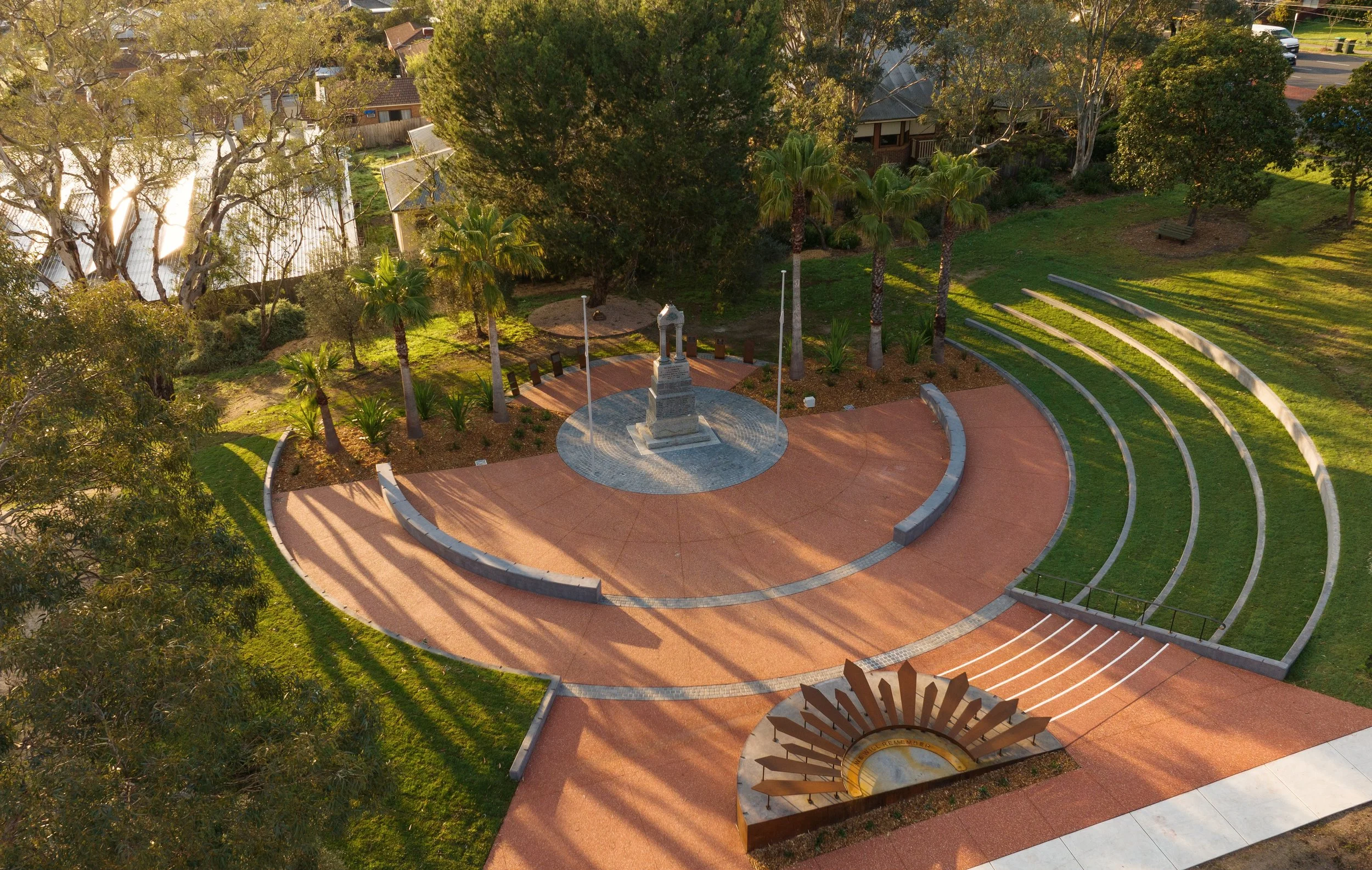 Established in the early 1990s, the reserve required modernization to better serve its purpose. The Manningham Council’s vision for the redevelopment was to create a contemporary, dignified, and reflective space that accommodates large gatherings for ANZAC Day ceremonies while providing a serene environment for individual moments of remembrance.